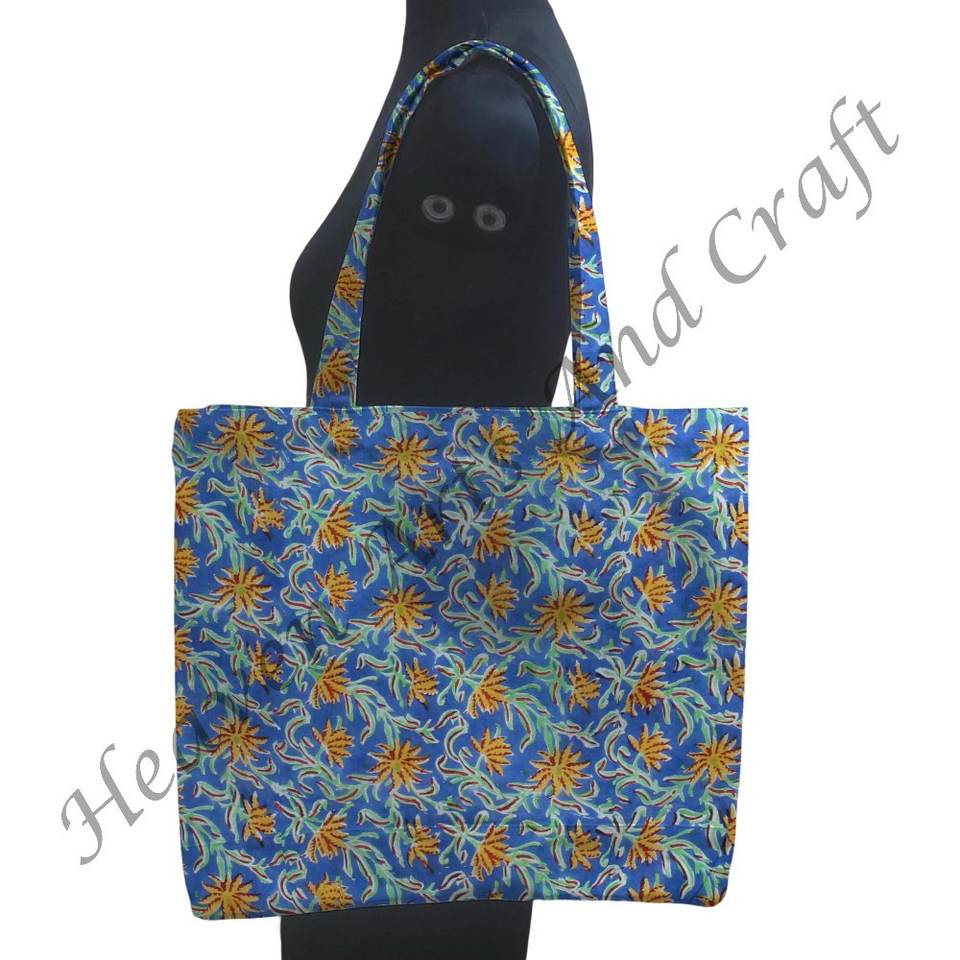 Elegant Floral Block Print Square Hand Bag Chic Sustainable Everyday Tote Handful Print Work Tote Bags Indian Handmade