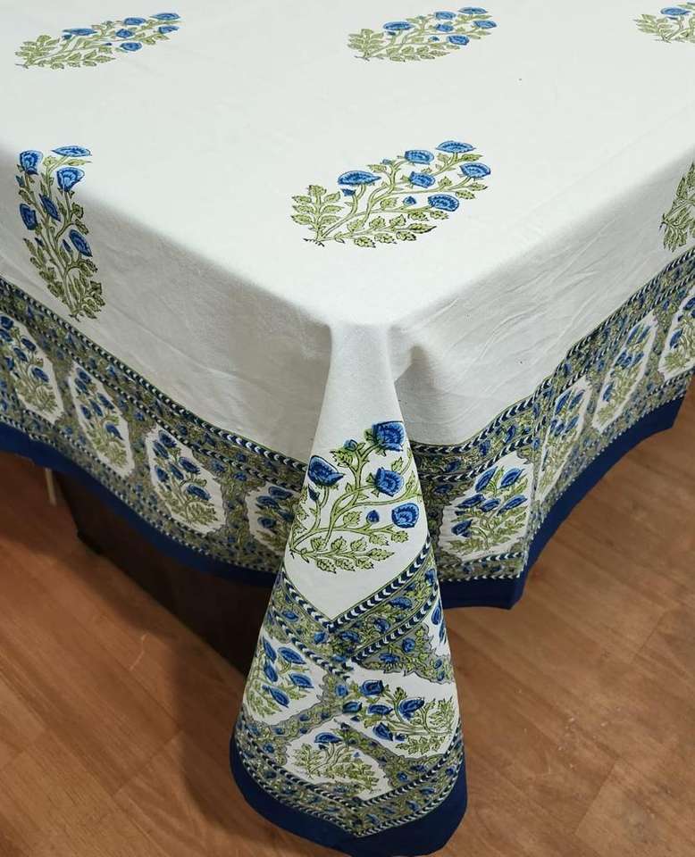 Elegant Floral Design 100% Cotton Tablecloth Handcrafted Traditional Artisan Hand Block Printing Handmade Elegant Table Cover