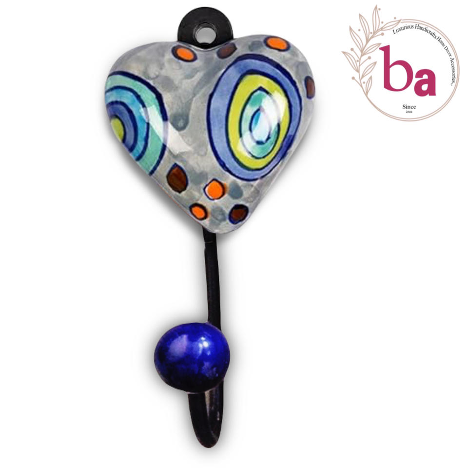 Elegant Floral Design Grey Ceramic Heart Tile Wall Coat Hook Keychain Hanger Hand-Crafted & Durable Stylish Product