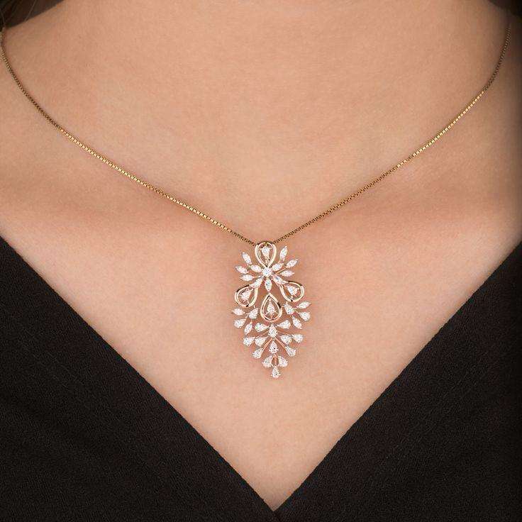 Elegant Floral Drop Pendant Necklace for Women – Gold Plated Marquise Cut Diamond Style Necklace Fine Jewelry