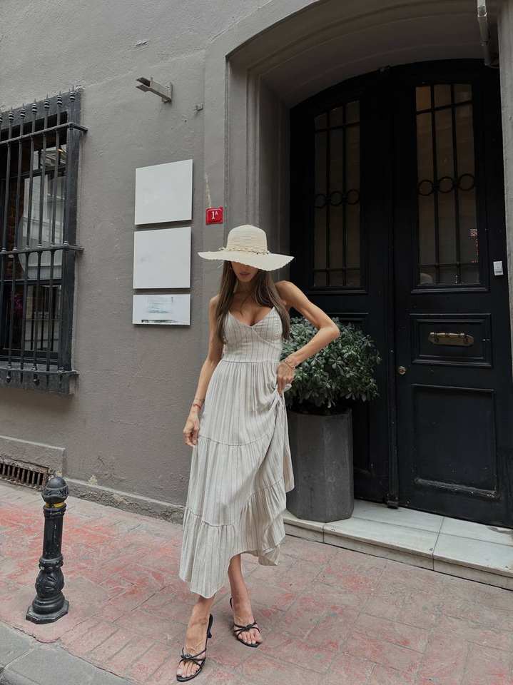 Elegant Floral Midi Summer Dress with Shoulder Tie Straps Lightweight Soft Fabric for Daily or Beach Wear