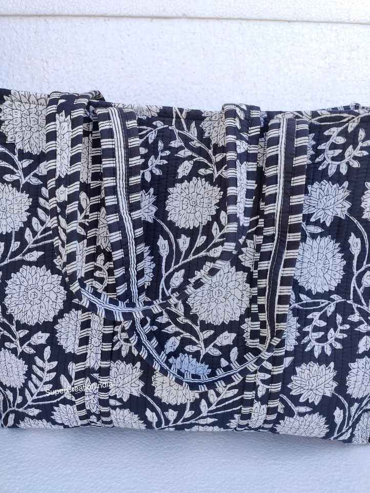 Elegant Floral Quilted Block Print Handbag Chic Sustainable Everyday Tote Colorful Print Work Quilted Tote Bags Indian Handmade