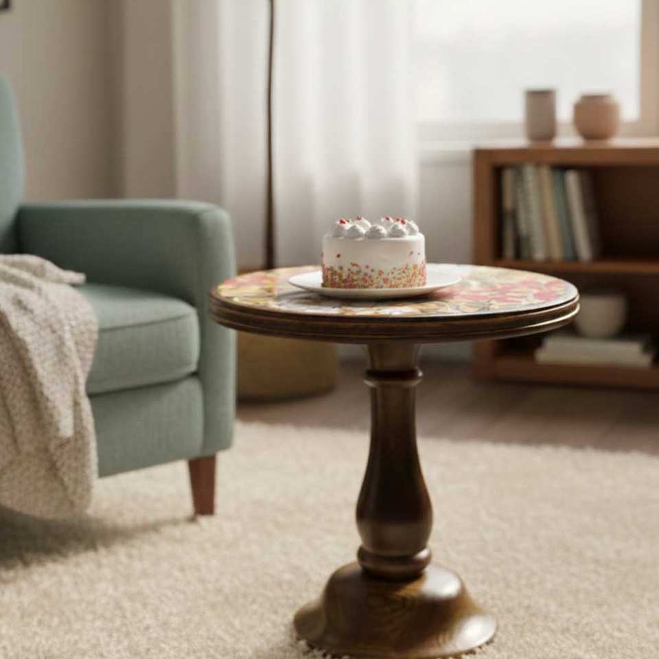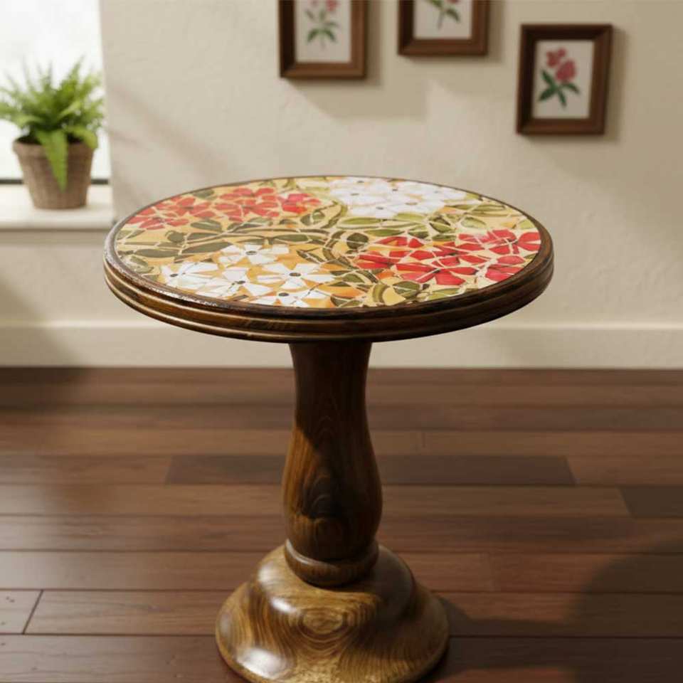 Elegant Floral Wooden Mosaic Pedestal Cake Stand with Durable Board Top Eco-Friendly Handmade for Parties Celebrations Low Price
