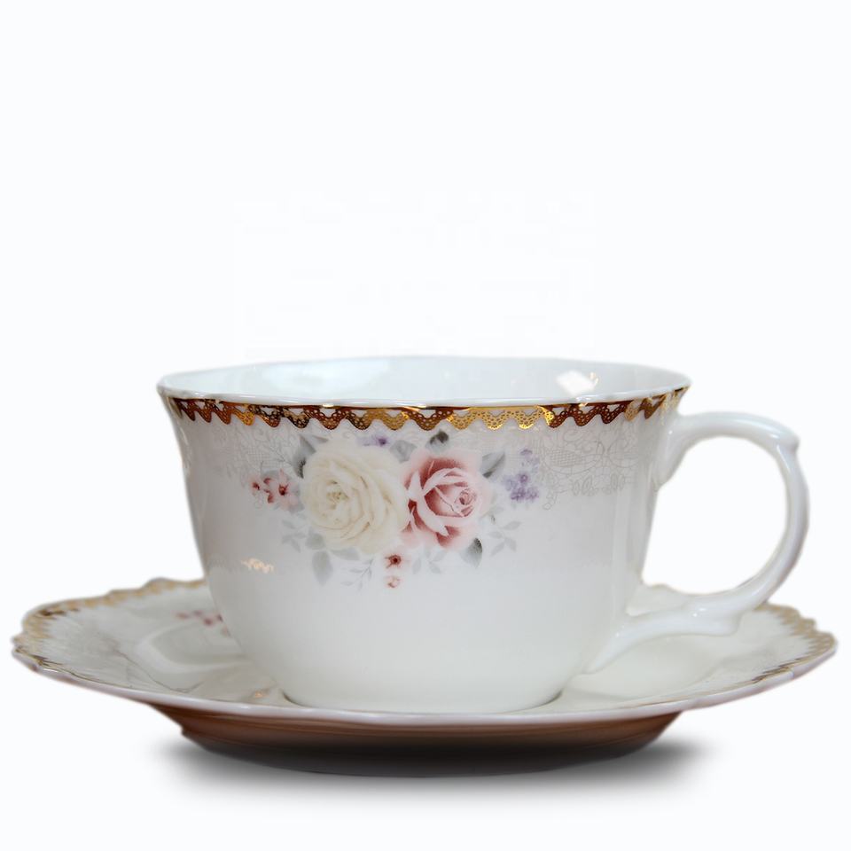 Elegant Flower Shape Dinner Set Plate Gold Rim Bone China Dinnerware Tea Cup and Saucer Set