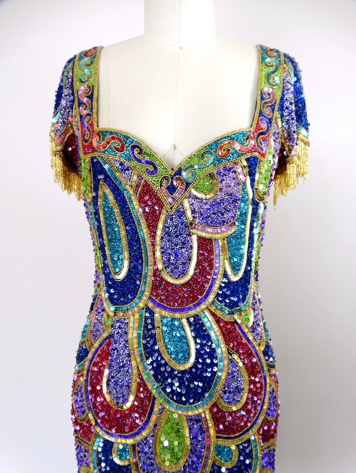 Elegant Formal Evening Dress with Embellished Fringes Sequins Beads for Club and Party Wear Straight Silhouette Mini Dress
