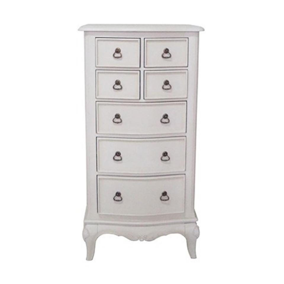 Elegant French Country Wooden Furniture White Mahogany Tall Narrow Chest for Bedroom Storage