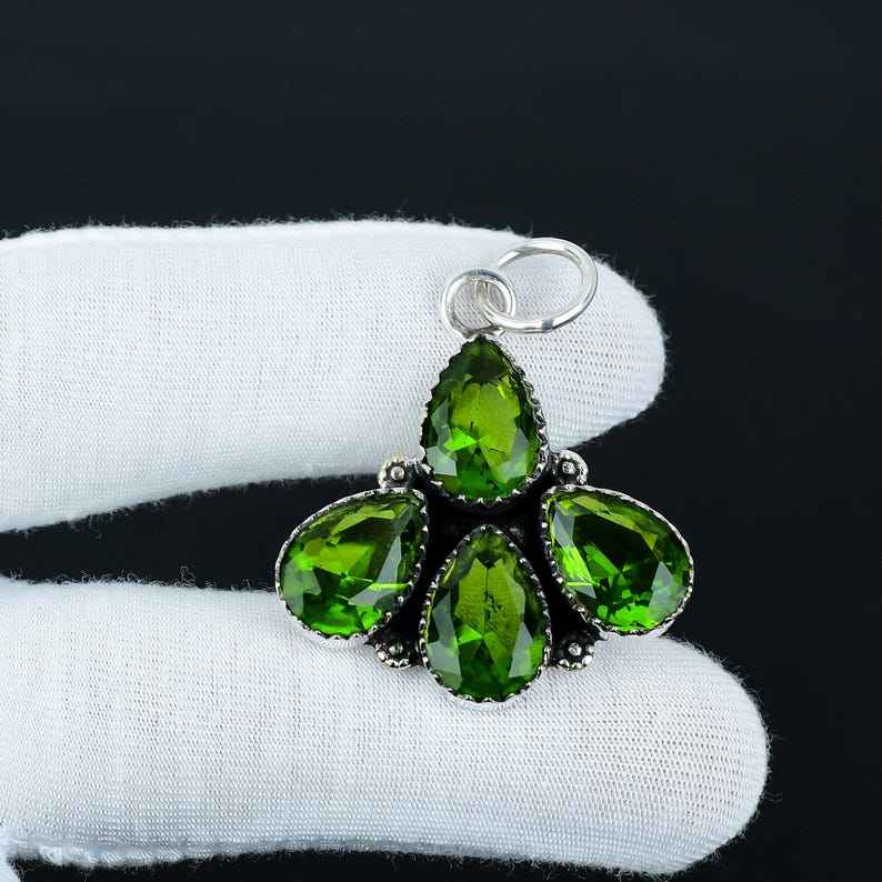 Elegant Fresh Green Peridot Pendant Necklace for Women Handmade Silver Plated Gemstone Oval Cut Bezel Setting Elegant Wholesale