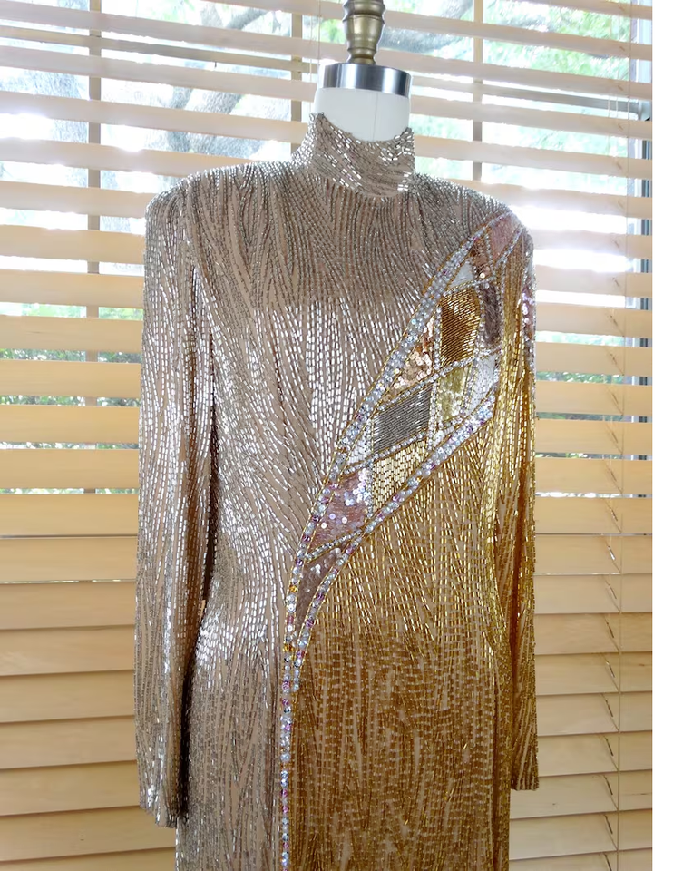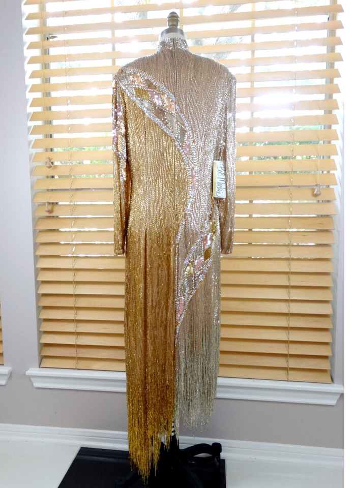 Elegant Full-Length Ladies Cocktail Evening Dress with Full Sleeves Embroidered Poly-Mesh Pearls Beading & Sequin Embroidery