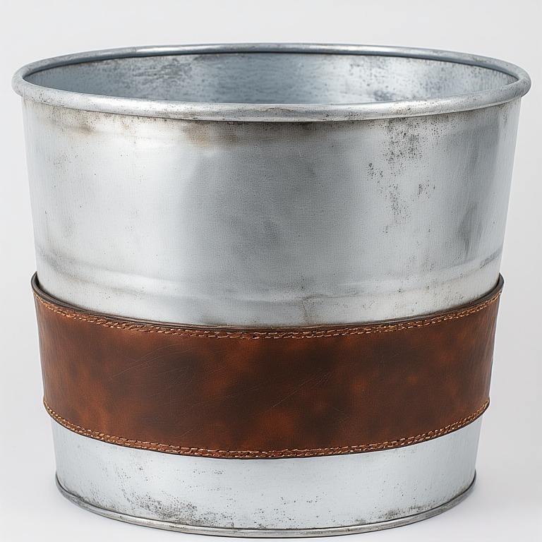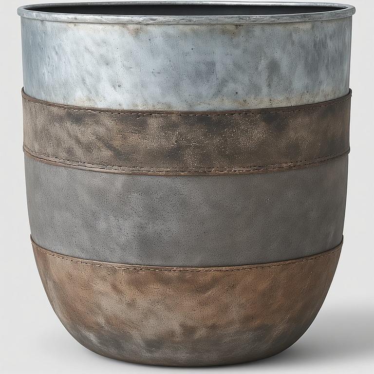 Elegant Galvanised Leather Planter With Hammered Patina Surface Handmade Detailing Designed For Interior Decoration