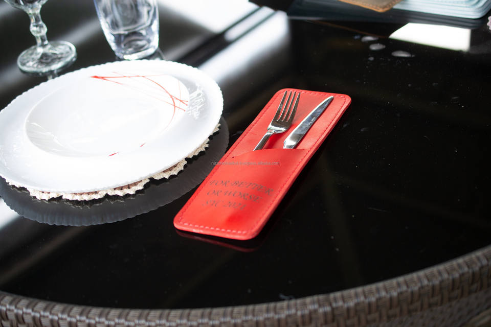Elegant Genuine Leather Eco-Friendly Luxury Durable Cutlery Holder for Restaurant Rustic Flatware Organizer Dining Roll LCH-0050