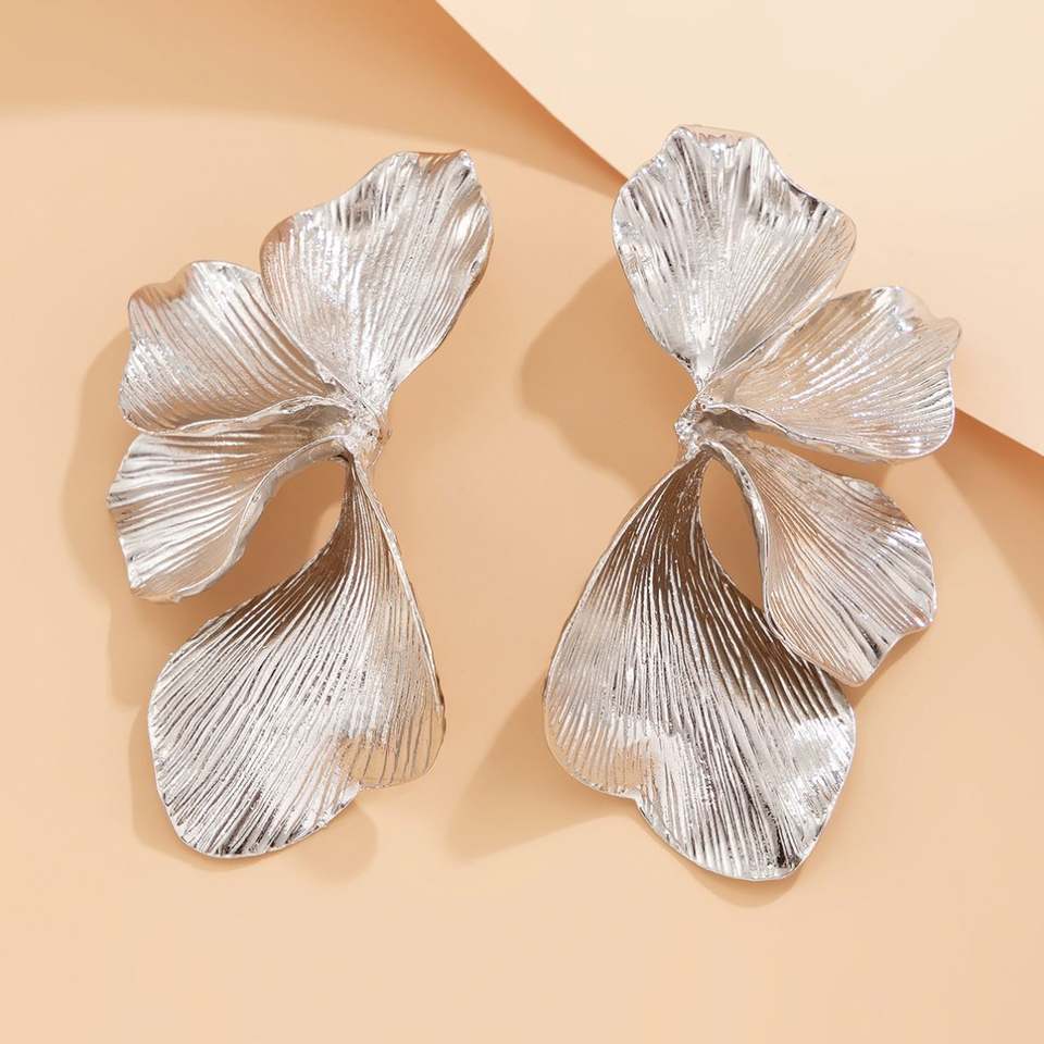 Elegant Ginkgo Leaves Half Flower Stud Earrings for Women Design Sense Gold Color Petals Piercing Earrings Ladies Jewelry