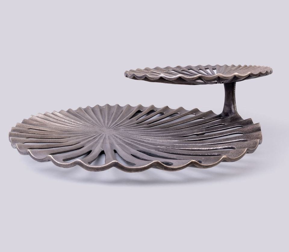 Elegant Glass Decorative Bowl with Antique Gold Leaf Metal Stand Luxury Centrepiece Platter