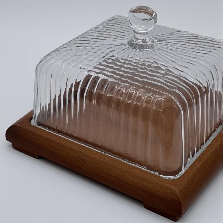Elegant Glass Dome With Ornate Wooden Base Cake Stand Artisan Handmade Offering Decorative Accent For Dining