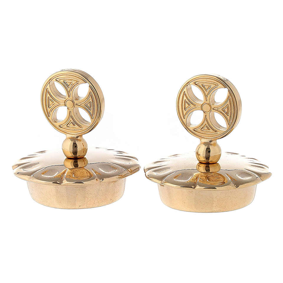 Elegant Gold Brass Water Cruets with Simple Cross Lids Premium Church Vessel for Mass Religious Use Decorative Liturgical Set