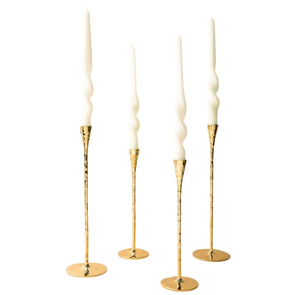 Elegant Gold Hammered Metal Taper Candle Holders Set Of 4 Tall Candlesticks For Wedding Centerpieces Home & Dining Table Decor