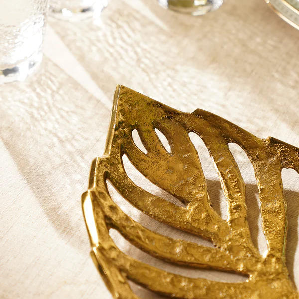 Elegant Gold Leaf Handcrafted Platter Luxury Design Timeless Beauty Serving Display Dishes & Plates