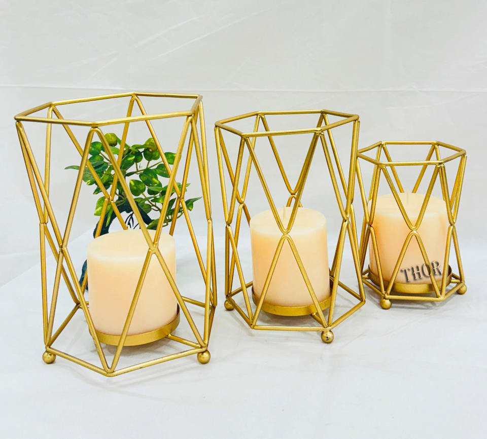 Elegant Gold Metal 3-Large Pillar Candlestick Holders for Decorative Tealights Ceremony Coffee Tables Wedding Centerpieces