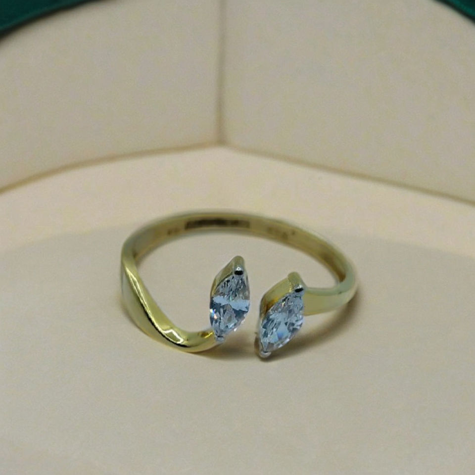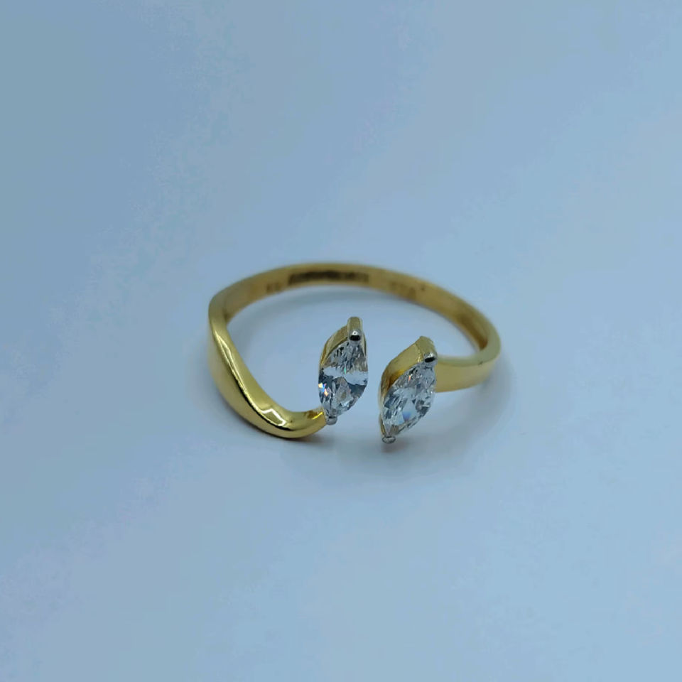 Elegant Gold Open Ring with Dual Diamond Design Stylish Adjustable Finger Ring for Women Modern Jewellery for Daily Wear