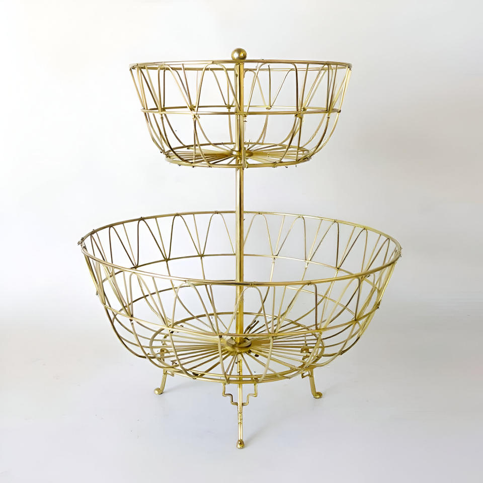 Elegant Gold Three-Tier Wire Basket Stand Spice Rack Ideal for Fruit, Snacks, and Home Decor Display in Style Cabinet