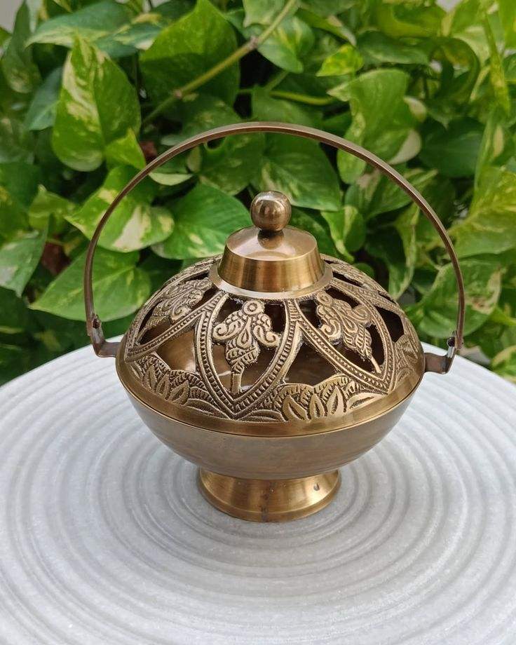 Elegant Golden Brass Bakhoor Burner With Unique Design Perfect For Festive Islamic Home Decoration And Daily Aromatherapy