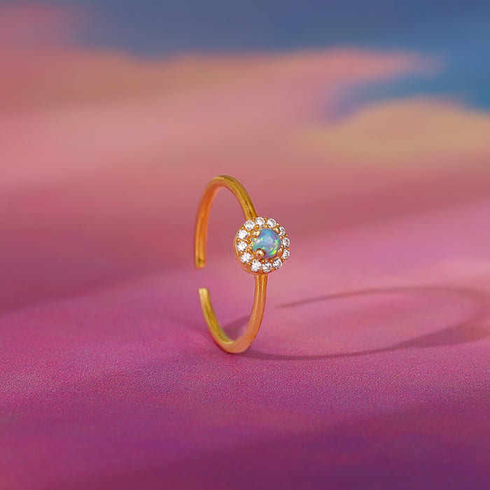 Elegant Golden Opal Opening Ring for Women Fashionable Stainless Steel with Princess Cut Inlay Trendy Handmade Jewelry for Women