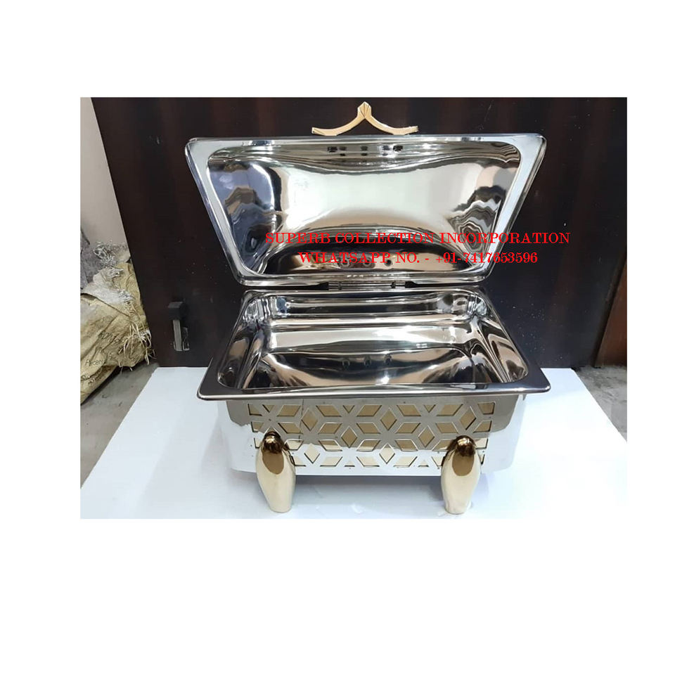 Elegant Golden Round Chafing Dish With Lid And Stand Food Serving Desserts Dish For Hotel Buffet And Catering Events