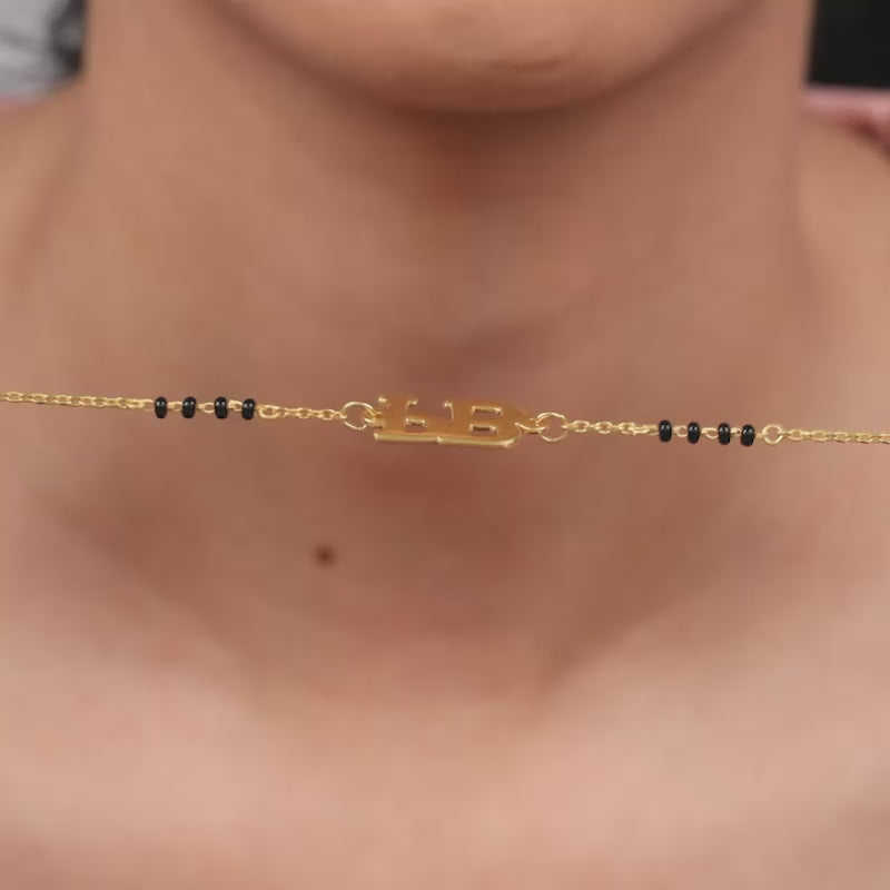 Elegant Golden Signature Initial Mangalsutra Bracelet Fine Beaded Necklaces Collection Handmade Jewelry for Women Wedding
