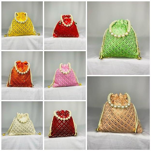 Elegant Gotta Patti & Zari Potli Bags Perfect Wedding & Anniversary Gifts and Embroidered Work Potli Pouch Bag for Women