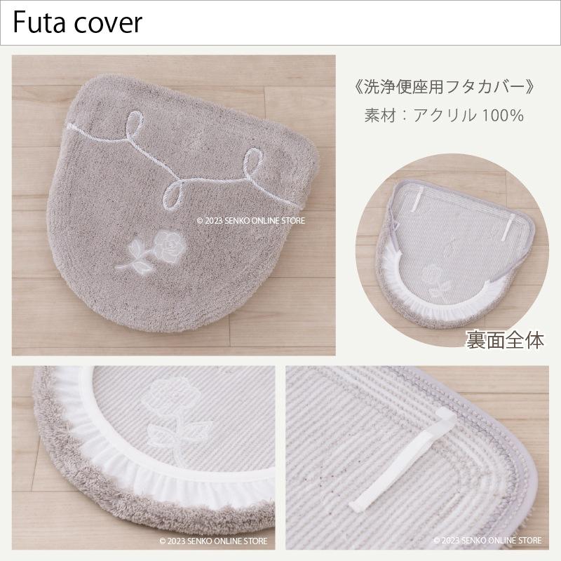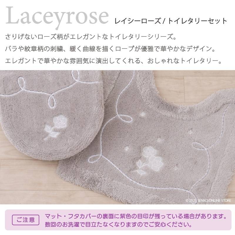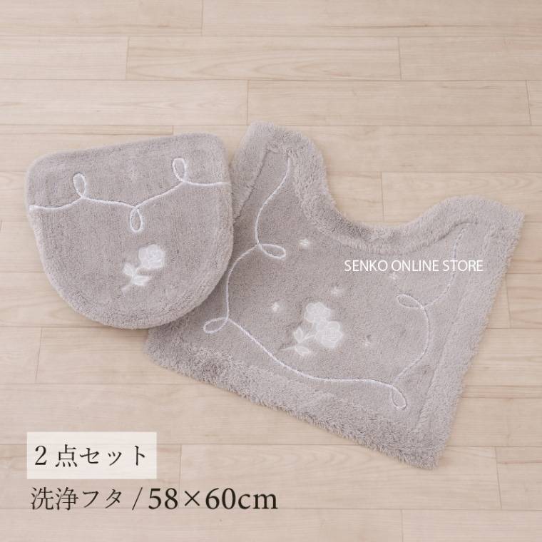 Elegant Gray Rose Floral 2-Piece Toilet Set Stylish Linen Bath Mat and Toilet Seat Lid Cover