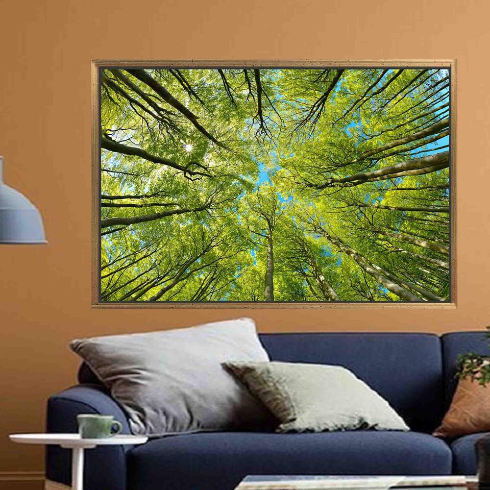 Elegant Green Tree Branch Canvas Print for Christmas Decor,1P:Gold Framed