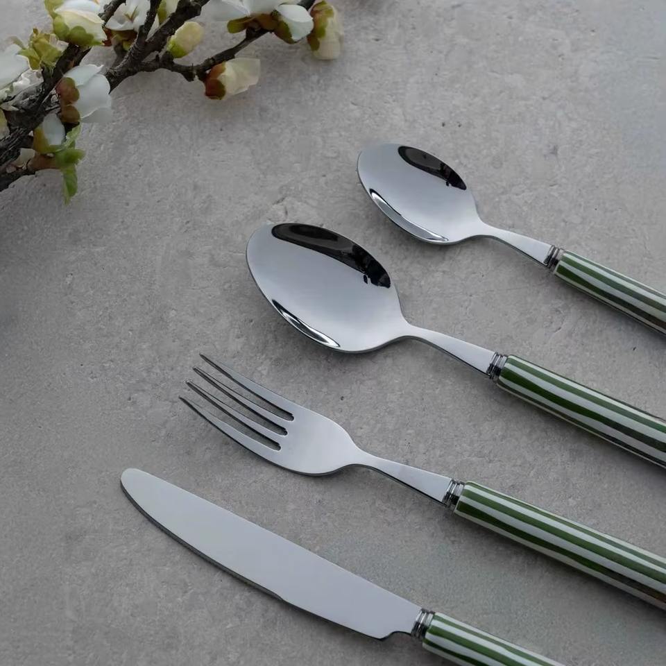 Elegant Green and White Handle Cutlery Set Perfect For Modern Homes Parties Catering and Daily Dining Handcrafted From India