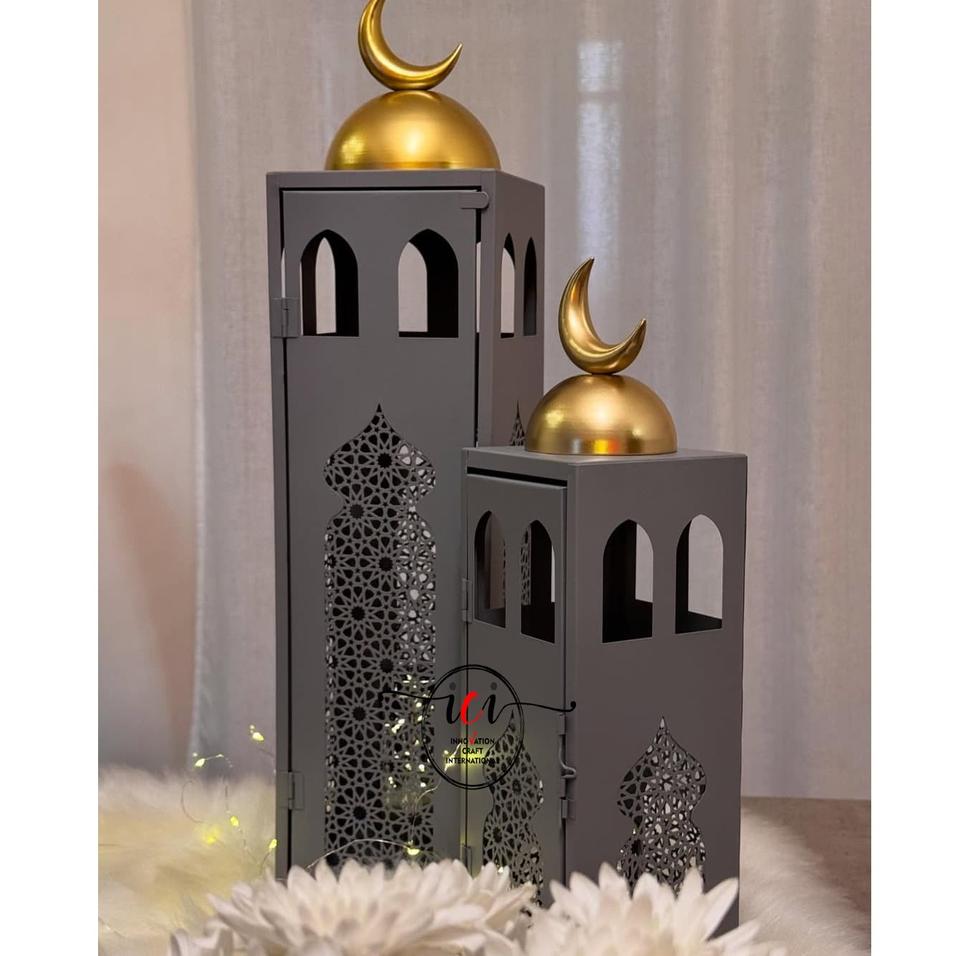 Elegant Grey-Finished Floor Lantern Unique Design for Ramadan Eid Hajj Festival Decorative Party Tableware for Table Decor