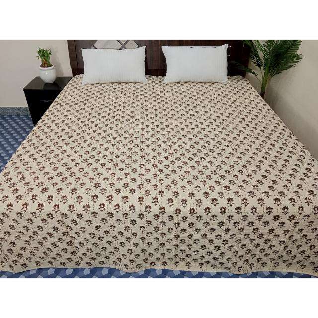 Elegant Hand Embroidered Washable Cotton Kantha Quilt Blanket Throw for Hotel Room Decor