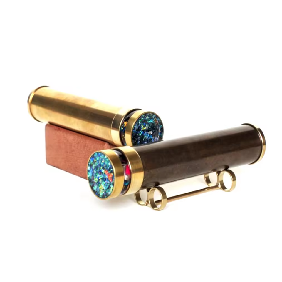 Elegant Hand-Polished Brass Kaleidoscope | Unique Cylindrical Optical Instrument for Intricate Pattern Viewing & Stress Relief