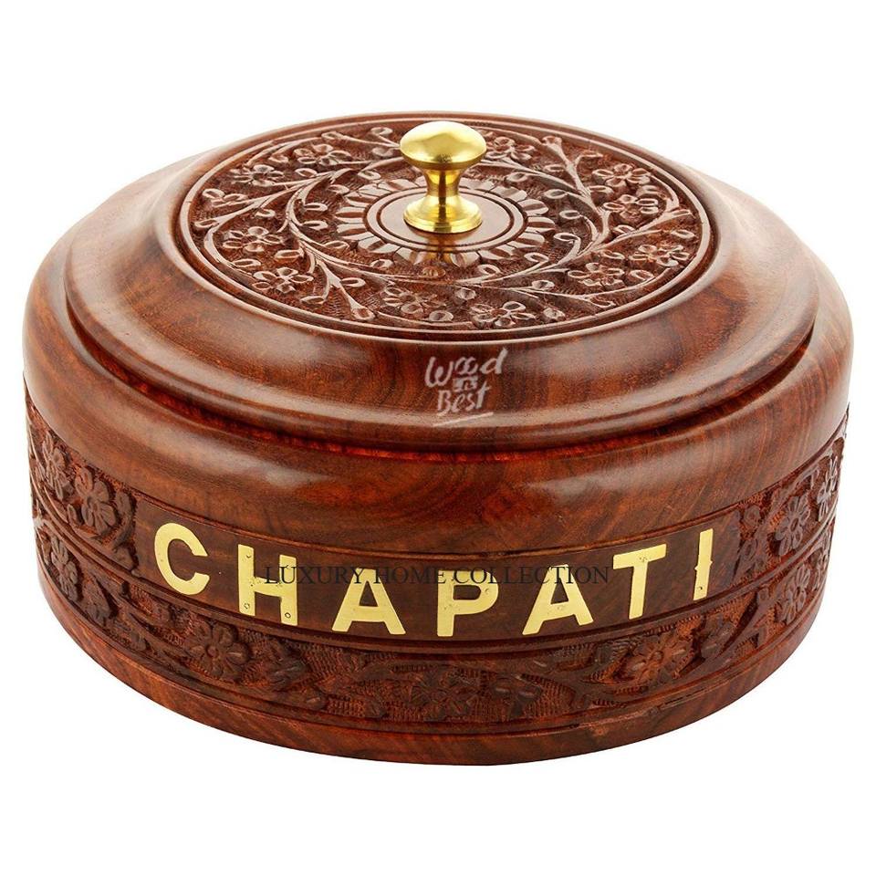 Elegant Hand-engraved Wooden Chapati Casserole with a Designer Floral Finished and an Airtight Insulated Locking Lid
