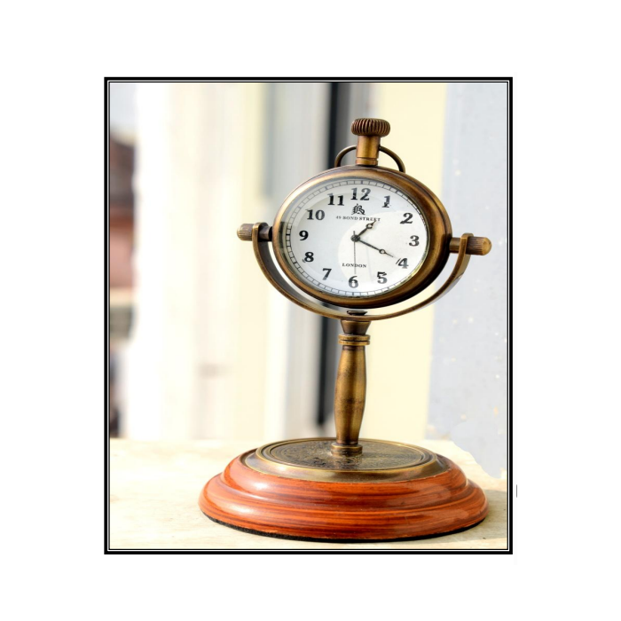 Elegant Handcrafted Antique Inspired Brass Table Clock with Copper Surface for Office Desk Display and Interior Decoration