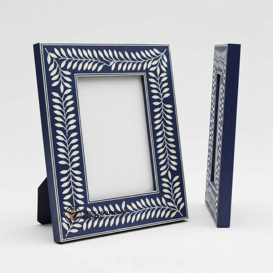Elegant Handcrafted Blue Bone Inlay Photo Frame Modern Striped Mosaic Design Perfect for Home & Office Decor