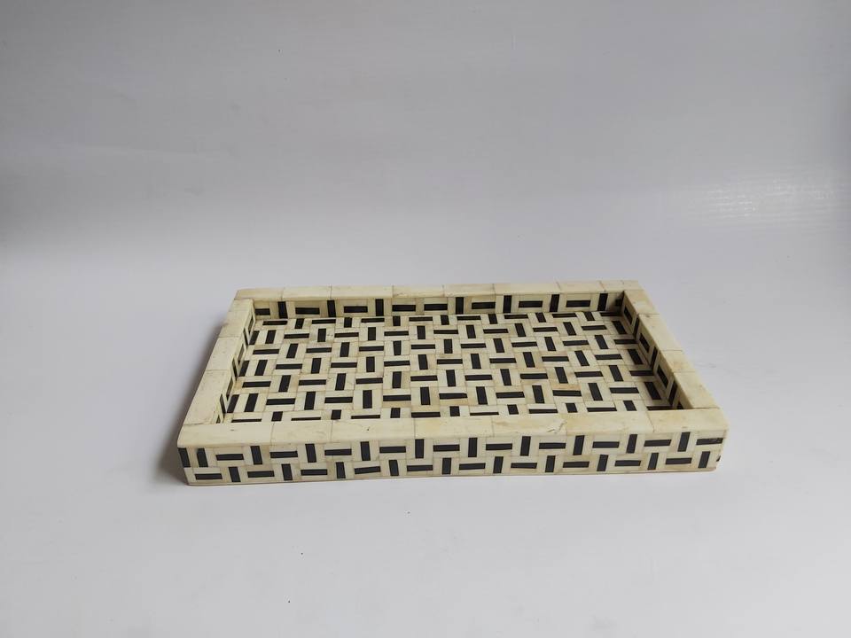 Sophisticated Wood Rectangular Tray with Elegant Intricate Bone Inlay Design Handcrafted Wedding & Home Decor Serving Tray