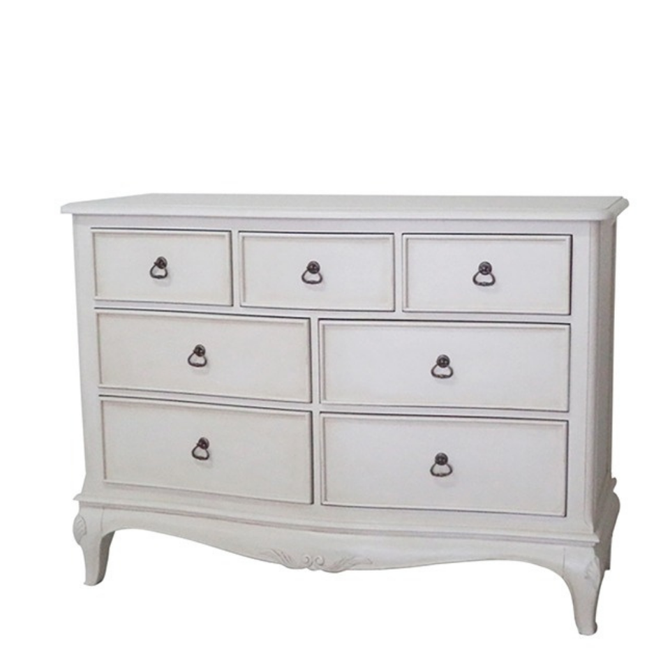Elegant Handcrafted Classic French White Solid Mahogany Low Chest of Drawers Storage Furniture with Intricate Design