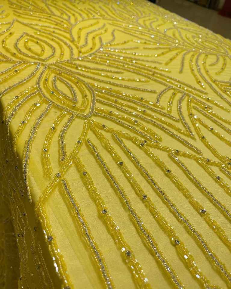 Elegant Handcrafted Embroidered Lace Fabric with Sparkling Sequins and Beads Perfect for Couture Dresses