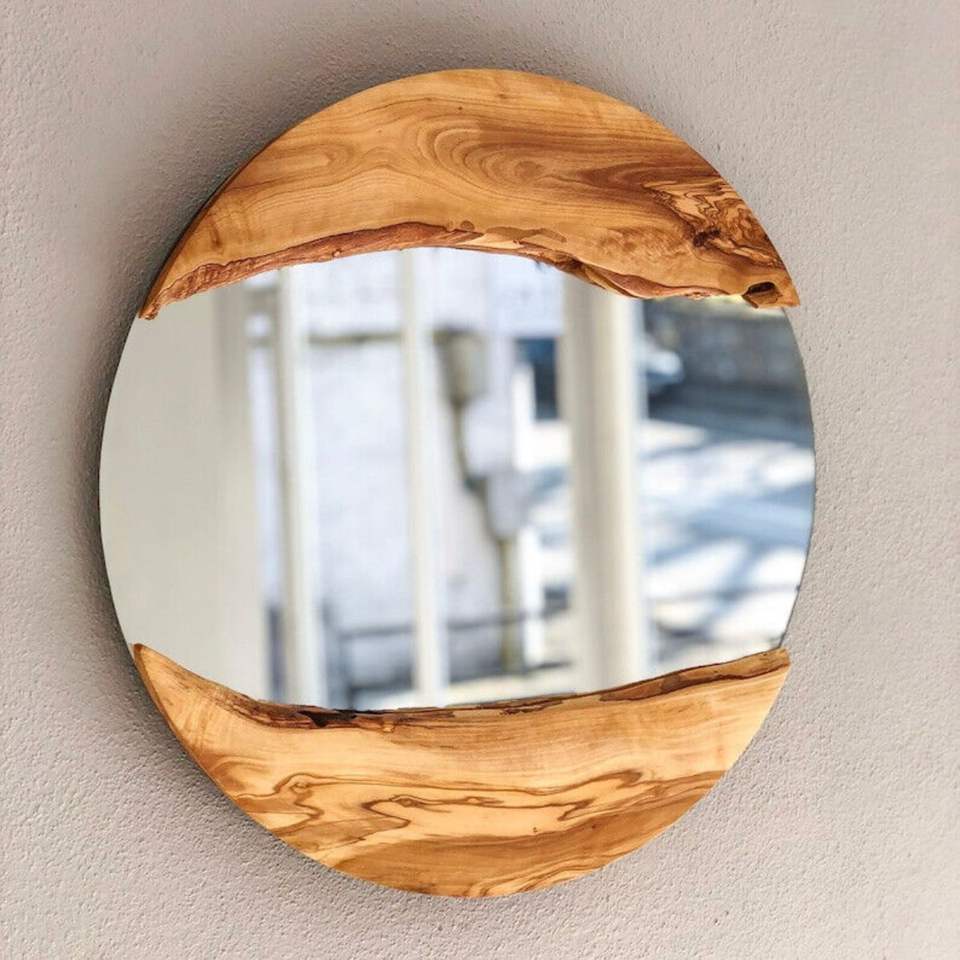 Elegant Handcrafted Mirror with Round Shape and Live Edge Wooden Frame Perfect for Rustic or Boho Style Interiors