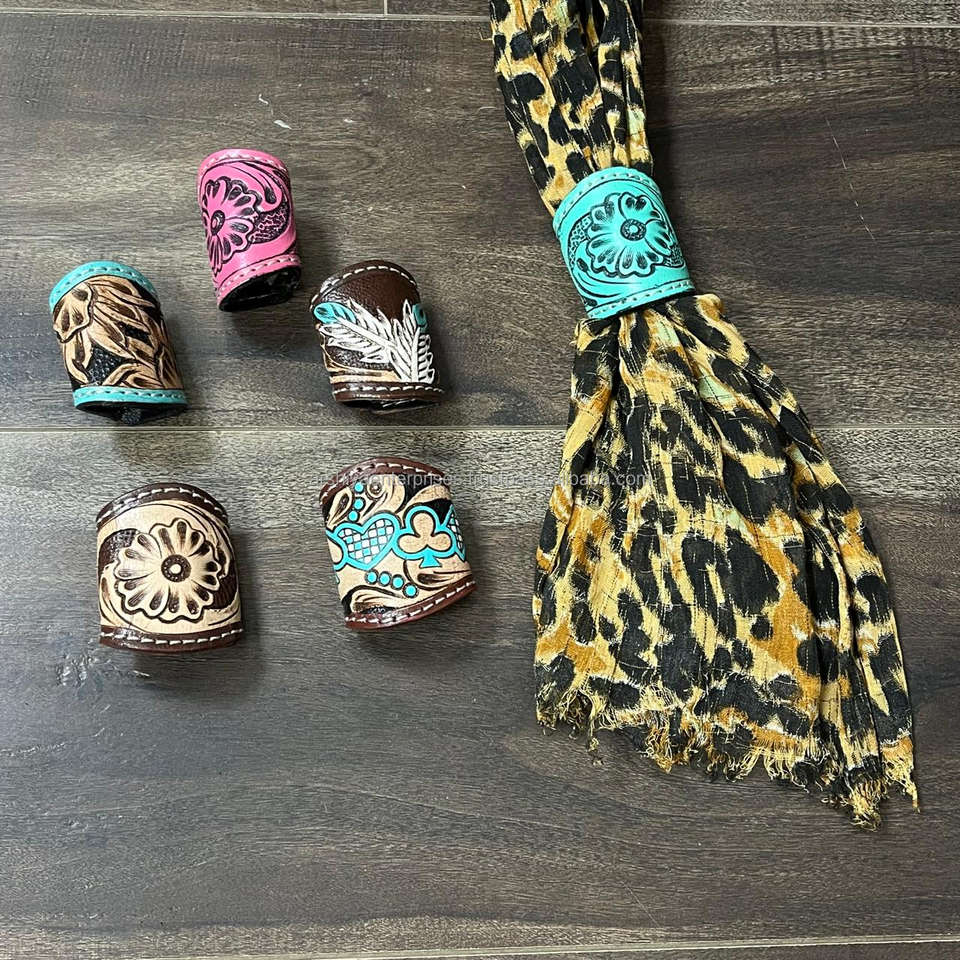 Elegant Handcrafted Tooled Leather Scarf Slide with Durable Design Western Scarf Holder for Women's Neckerchief Scarf Woggles
