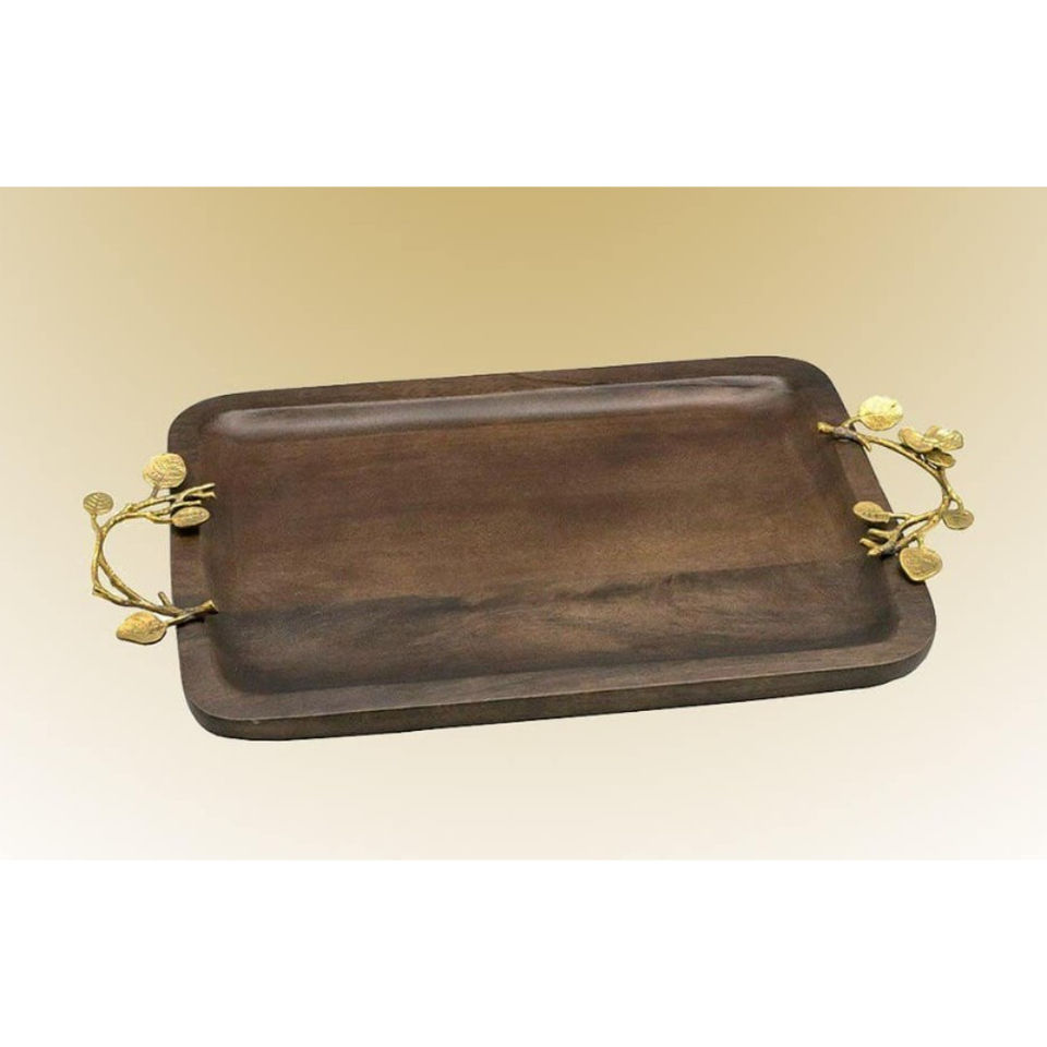 Elegant Handcrafted Wooden Serving Tray With Gold Leaf Accent Round Decorative Platter For Hotel Or Restaurant Supply On-Sale