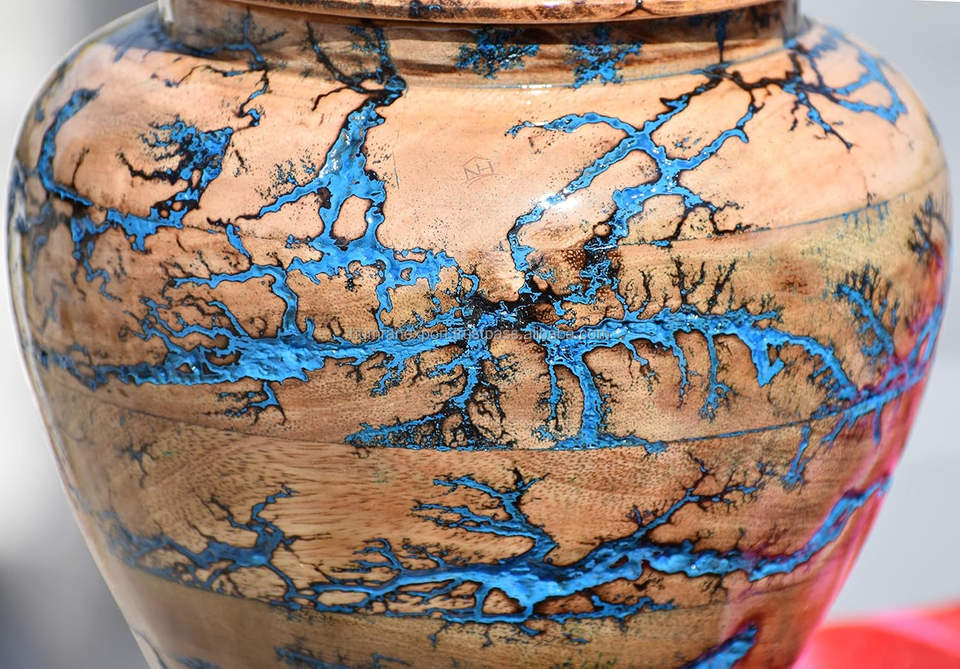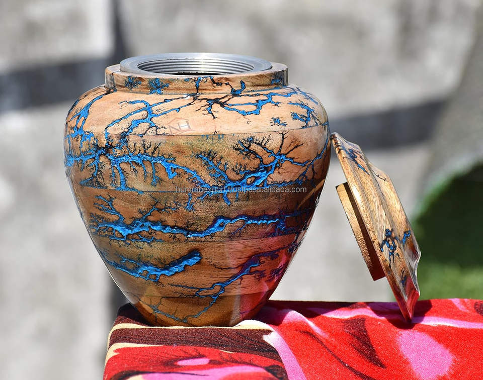 Elegant Handcrafted Wooden Urn for Ashes with Electric Shock Design Best Quality with High Glossy Polish in India
