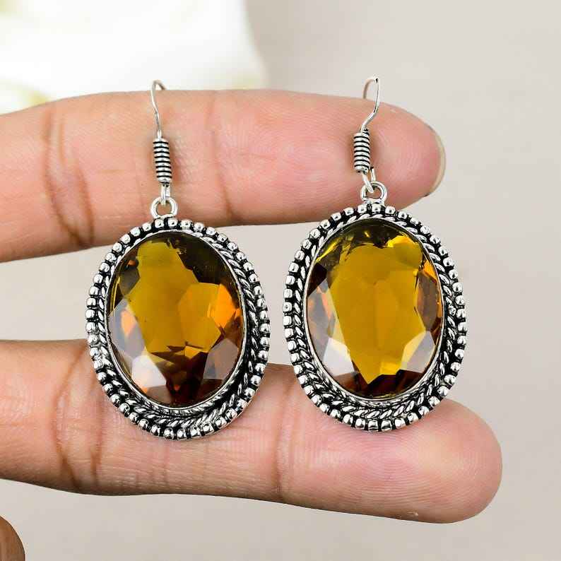 Elegant Handmade 925 Sterling Silver Drop Earrings Bright Yellow Citrine Gemstone Elegant Jewelry for Women Girls Parties Gifts