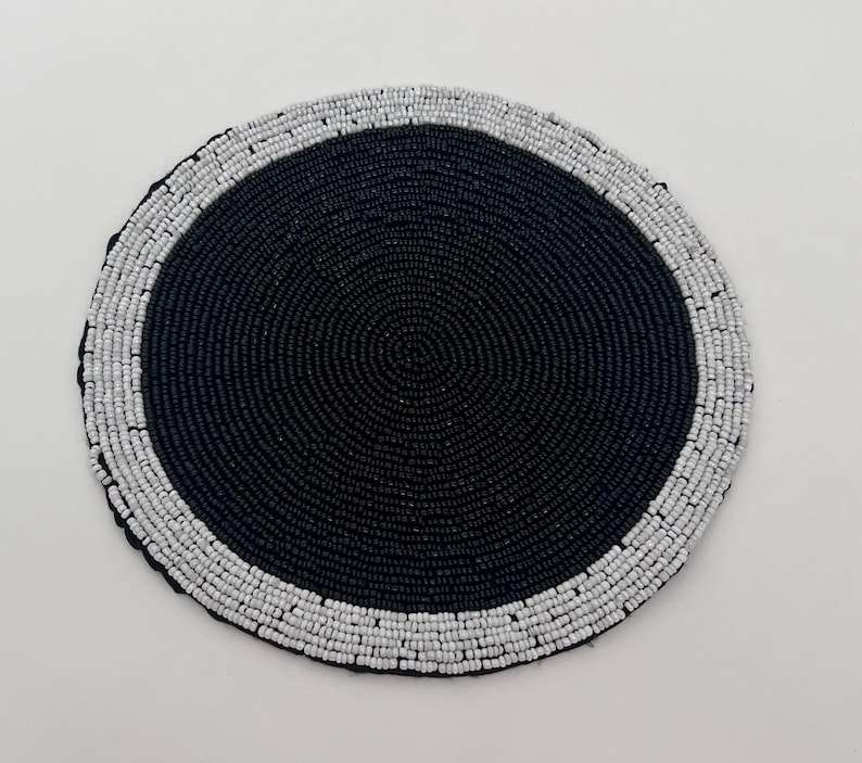 Elegant Handmade Black & White Beaded Table Runner Holiday Dining Table Decor & Placemat Gift for Home