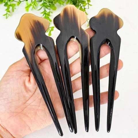 Elegant Handmade Eco-Friendly Classic Ox Horn Hair Stick Bun Fork Love Style High Quality Customizable Hair Pin Polished