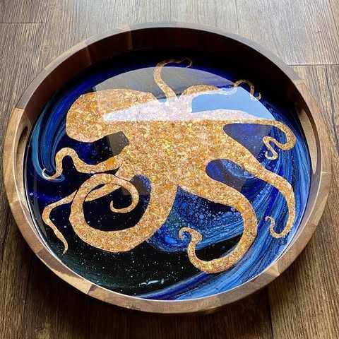 Elegant Handmade Epoxy Resin Wood Tray Unique Artistic Finish Decorative Serving Board for Wedding Dining Coffee Snacks Tea