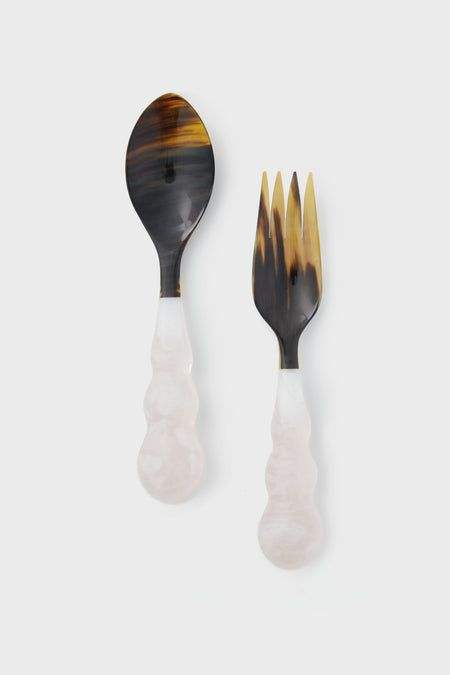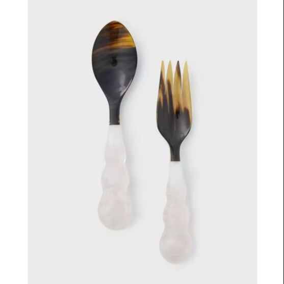 Elegant Handmade Resin & Horn Salad Server Spoon and Fork Set with Long Handle Modern Party Dining Accessories-Eco-Friendly