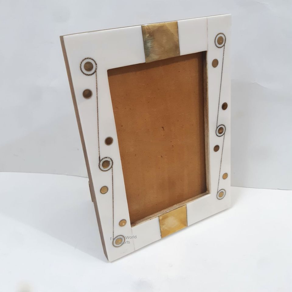 Elegant Handmade Resin Inlay Photo Frame with Brass Floral Accents Vintage Inspired Mdf frames Decor for Timeless Memories